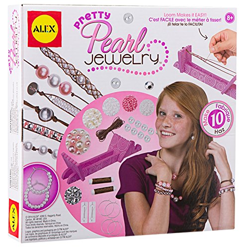 ALEX Toys DIY Wear Pretty Pearl Jewelry lets you make your own pearl jewelry by beading, braiding and weaving. Create bracelets, necklaces and earrings. Includes cotton twine (150in. / 381cm.), foam beading loom, seed beads (0.42oz. / 12g.), 72 pearl beads, 8 silver buttons, 20 silver beads, 4 earring hoops, 2 embroidery needles, 2 spools of cotton thread (360in. / 914.4cm.) and easy instructions.Feature