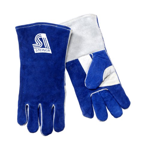 Steiner 2419B-L Welding Gloves, Blue/Gray B-Series, Side Split Cowhide, Foam Lined, Large
