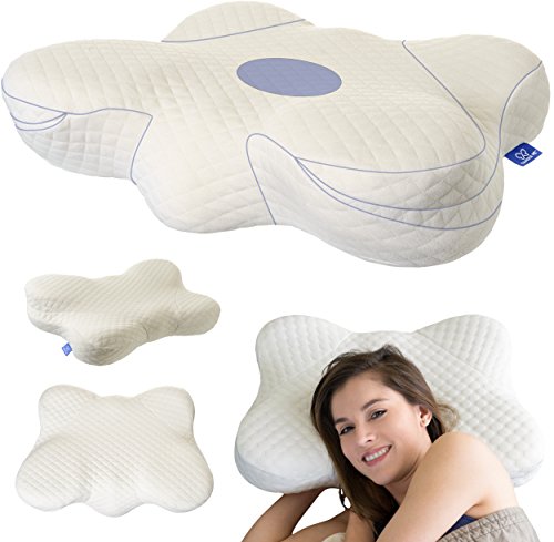 MULTIPLE SLEEP POSITIONS: Perfect cervical contour pillow for side sleepers and a great cervical pillow for back sleepers: Unique memory foam butterfly shape features multiple heights to provide support in all the right places, allowing for maximum comfort. Memory foam relieves neck, shoulder and back pain by allowing neck and shoulder muscles to fully relax.