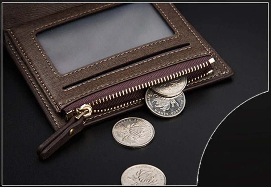 Mens Wallets and Purses Structure:Credit Cards /Money Clip/ Coins Zipper Pocket /Photo Holder etc