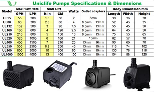 Description: This submersible pump is perfect for nano to medium sized aquariums, small ponds, water gardens, and desktop water fountains.