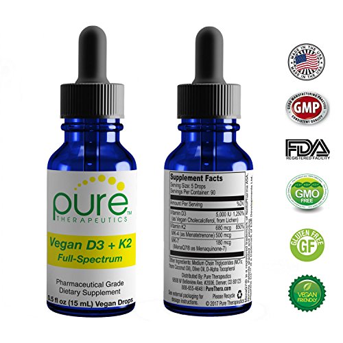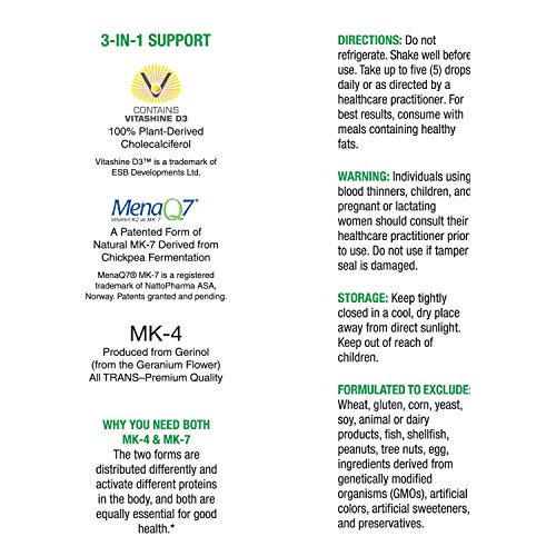 -. Title : Vegan D3 + K2 "Full Spectrum" Drops for Best Absorption | 5 Drops Contain: 5,000iu vit D3 "Vitashine"; 500mcg vit K2 (MK4) & 180mcg vit K2 (MK7) "MenaQ7" | Soy-Free, GF, Non-GMO, Tasteless & Odorless
