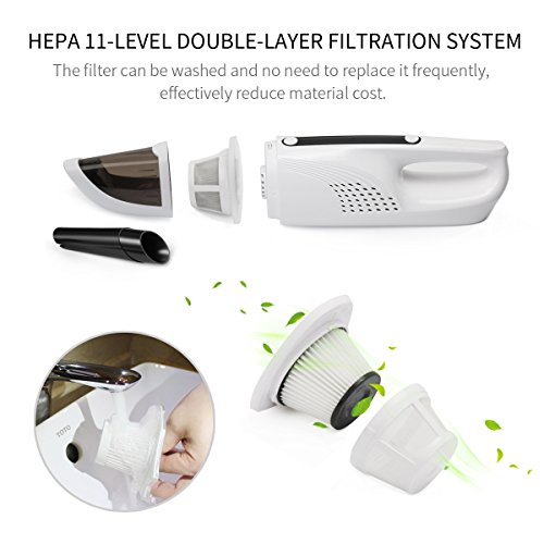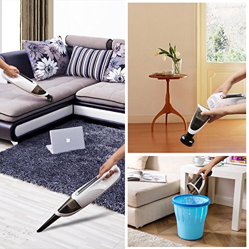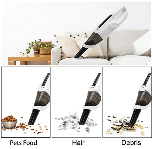 【HOME/CAR/ USE VACUUM CLEANER】Ergonomic and flexibly handle design,multiple suction nozzles can be exchanged, this pet hair handheld vacuum allow you to avoid any problems during the home and car cleaning.Any stubborn debris in the dark corners,such as edges, stairs, upholstery or even the car interior etc, no worries about kids snacking and dog hair
