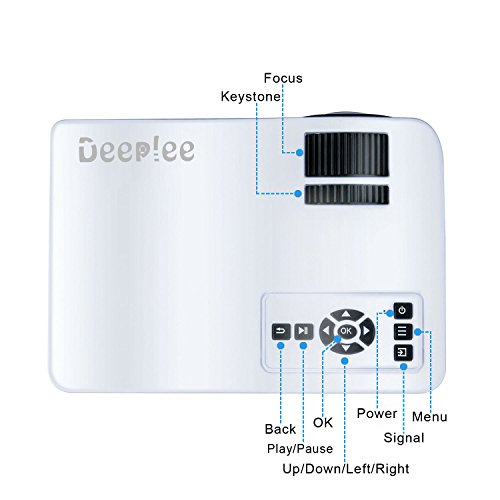 Enjoy your own exclusive home private cinema with mini-sized dimensions and picture capabilities of up to 120 inches, you can view your favorite media from usb, video connections. It will quickly become your fancy entertainment tool. An affordable solution for all, satisfy your different needs featuring multiple interface inputs, av/usb/hdmi/sd slots which makes it possible to connect usb drive, pc, laptop, tablet, dvd, ps3/4, wii, Xbox, mp5, digital camera, mobile phone to our projector. Boundless joy derives from this entertainment projector perfect for your family entertainment, play video games, watch movies, or view your favorite family clips straight from your camera, and also great toy projector for kids play and education. [Tips] ▪not recommended for business presentation, school education, recommend to use in a dark environment for better effect. ▪A Wi-Fi display dongle or wireless hdmi adapter is needed if connecting to iPhone or iPad, a mhl cable is needed if you want to connect to your android devices (should support mhl function) ▪when you get outer device connected to this projector, please press "source" button to choose relative playing source. [Specifications] ▪display type: Lcd tft display ▪native resolution: 640480 pixels, support 720/1080p ▪brightness: 30 ansi lumen(500 led lumen) ▪lamp life: 30000 hours ▪lens: Manual focus ▪aspect ratio: 16:9 and 4:3 ▪projection method: Front/rear/ceiling ▪picture size: 26-100 inches ▪projection distance: 3.3-16 ft. ▪working voltage: 110-240v / 50-60hz, 50w ▪input: Hdmi/usb/sd/av ▪output;5v usb/audio [package includes] 1 Deeplee mini projector 1 remote control (battery is not included) 1 power cable 1 3 in 1 av cable 1 manual.Feature