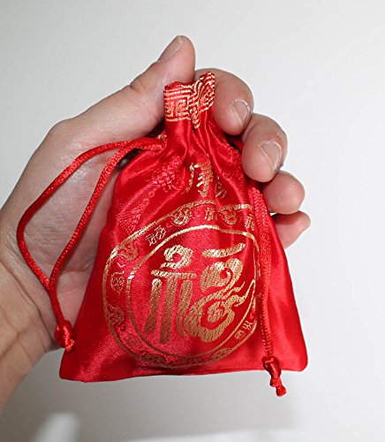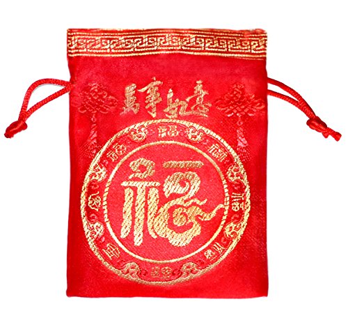 Lucore Good Fortune Red Brocade Pouch - 10 PC Set of Chinese Silk Style Good Luck Fortune Gift Bags