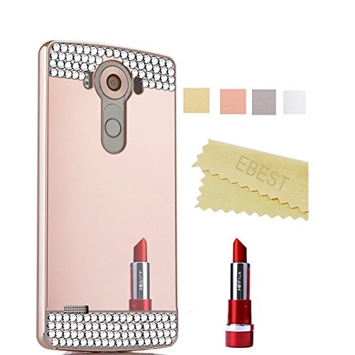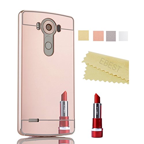 LG G3 Detachable(2-IN-1) Case, Ebest Luxury Electroplate Mirror Acrylic PC Back Cover Case and Metal Bumper Frame for LG G3, Rose Gold Mirror