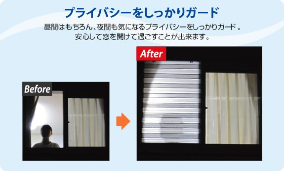 昼間はもちろん、夜間も気になるプライバシーをしっかりガード。安心して窓を開けることができます。