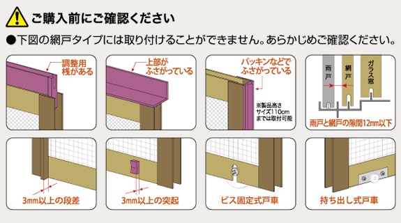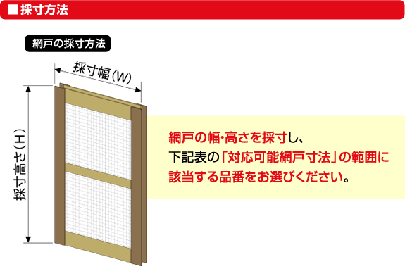 ・網戸の確認をして頂き、取付可能な網戸かご確認ください