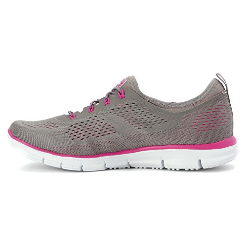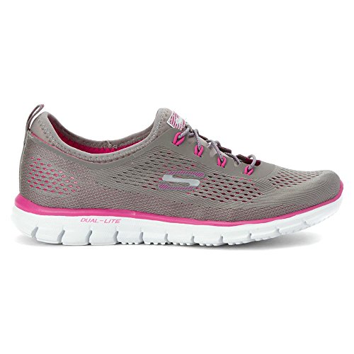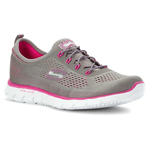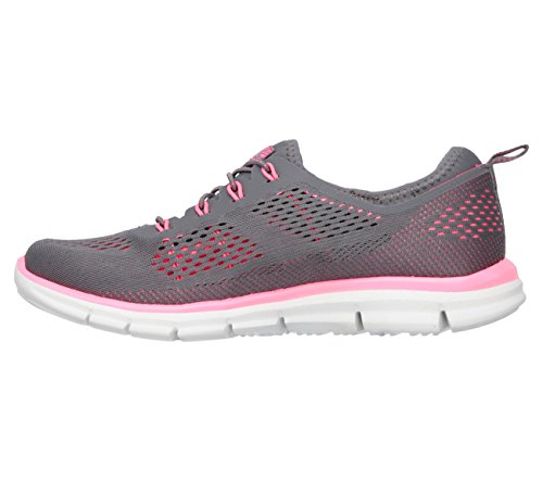 Skechers Sport Women's Harmony Fashion Sneaker, Gray/Fuchsia Mesh/White Trim, 5 M US
