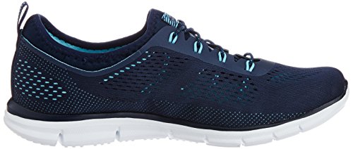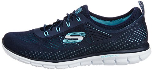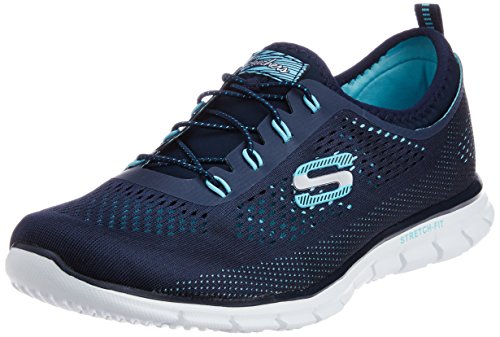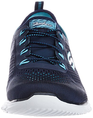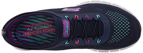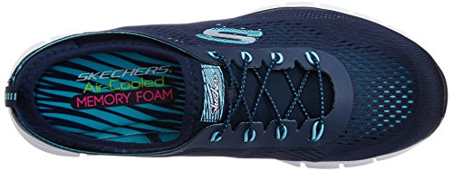 Skechers Sport Women's Harmony Fashion Sneaker, Navy/Aqua Mesh/White Trim, 7 M US