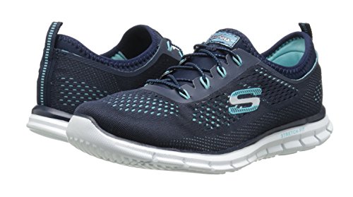 Skechers Sport Women's Harmony Fashion Sneaker, Navy/Aqua Mesh/White Trim, 6 M US