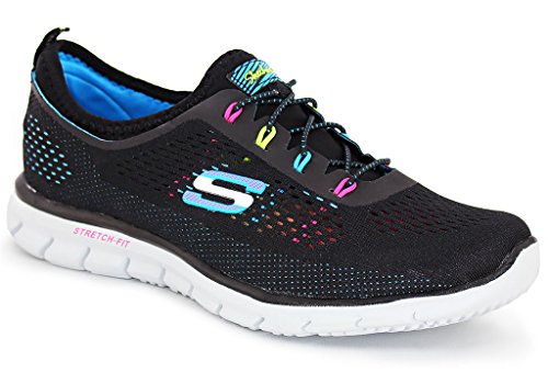 Skechers Sport Women's Harmony Fashion Sneaker, Black/Multi/Mesh/White Trim, 7.5 M US