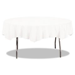 Product Description Best of both worlds, disposable tablecloth provides the protection of plastic and the stick-free surface of paper. One-ply facial-tissue surface. Plastic backing. Shape: Round; Material(s): Tissue/Plastic; Color(s): White; Diameter: 82". 0