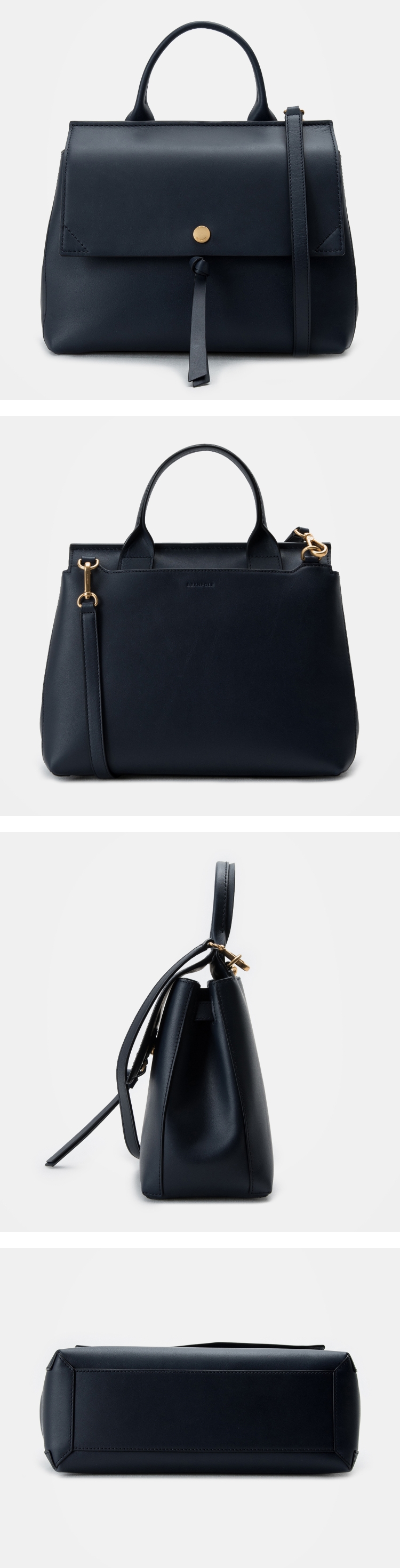 핸들이 있어 토트 겸 숄더가 가능하며 패미닌한 가죽 묶음 디테일이 포인트로 세련된 무드의 아이템입니다.