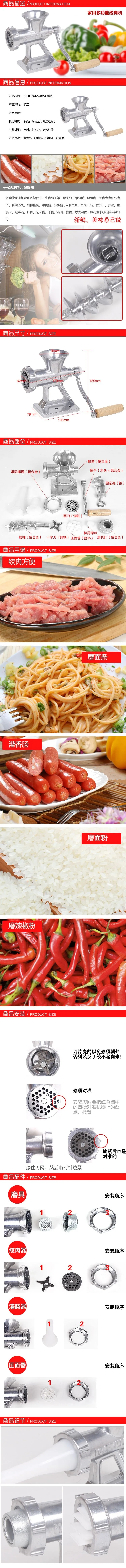 产品用途:一般用来绞肉馅,挤面条、灌香肠、绿豆、磨芝麻酱、咖啡豆、辣椒粉等等用途。