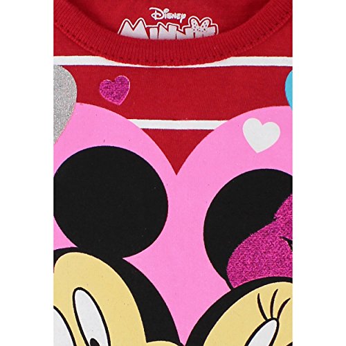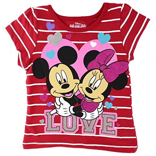 Disney Little Girls' Short Sleeve Mickey and Minnie Love T-Shirt, Red, 3T