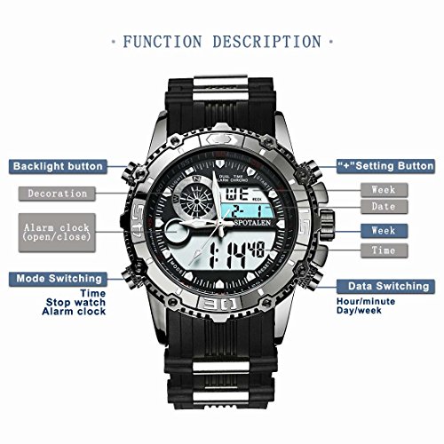 -. Title : SPOTALEN Men's Digital Sports Watches, Military Multi-functional Black Waterproof Wrist Watches with LED