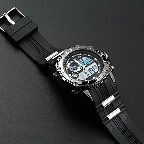 -. Feature : Quartz movement--High Quality Imported Japanese quartz movement,Keep Perfect Time and Save Energy Friendly / Waterproof--Water Resistance for Daily life ,but not for Diving ,Swimming or Hot Water Bathing / Desigb for sport-- shock resistant, Date and Day,Backlight,Stopwatch,24Hours,Alarm Function make it perfect for all kind of sport and daily use / Watch band--Environmental protection silicone,Comfortable for Wearing in Ourdoor Sports Activities / Packaging--Good watch as a gift with box as Mens Birthday,Aniversary,Business,Christmas.