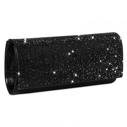 -. Title : CASPAR Damen elegante Abendtasche / Clutch mit vielen funkelnden Strass Steinen und zusätzlichen Ketten - Silber & Schwarz - TA325