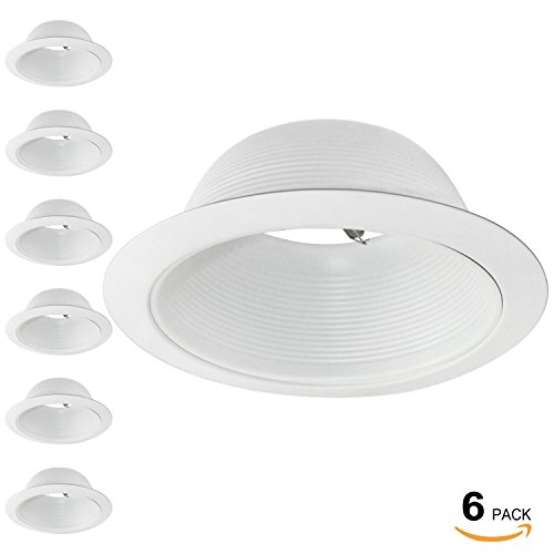 6 Pack 6 Inch Recessed Can Light Trim with White Metal Step Baffle, for 6 inch Recessed Can, Detachable Iron Ring Included, Fit Halo/Juno Remodel Recessed Housing, Line Voltage Available
