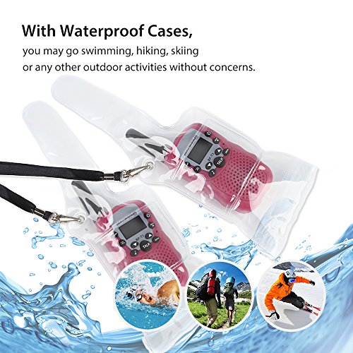 GIFTS FROM OUR HEART: Each pair of Baofeng T-3 walkie talkies will come with heartwarming gifts -- 2 waterproof cases and 2 hand straps. With the waterproof cases & hand strap (40cm/ 15.75inch), you may go swimming, hiking, skiing or any other outdoor activites without concerns.