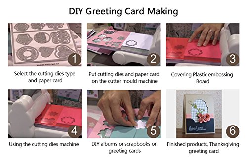 - High quality thin metal cutting dies made of 100% steel,These steel dies will cut through cardstock, thin chipboard, 1/4 inch cork, felt, acetate, sticky back canvas, fabric, denim, sandpaper, 2mm craft foam, wood veneer paper, photo magnet sheets and much more! Works in most major brands of die cutting machines,like Sizzix big shot Cuttlebug crossover die cutting machine,Let you experience the fun of DIY!