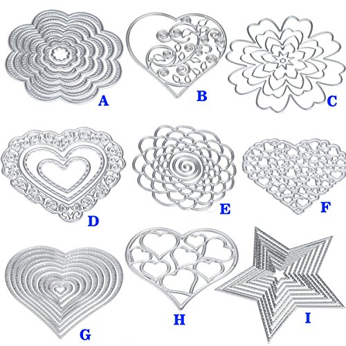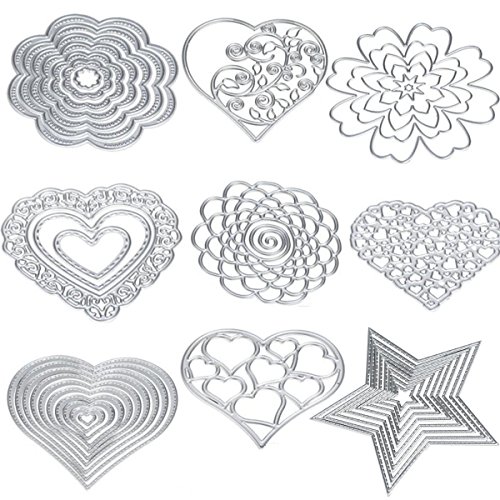 Cutting Dies Cut Metal Scrapbooking Love Heart Square Flower Star Stencils for DIY Embossing Photo Album Decorative DIY Paper Cards Making Craft 9set (Set 5)