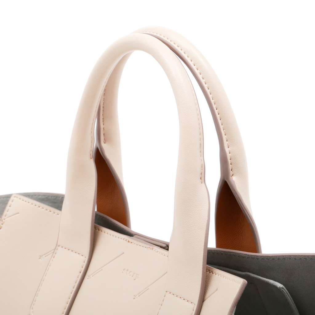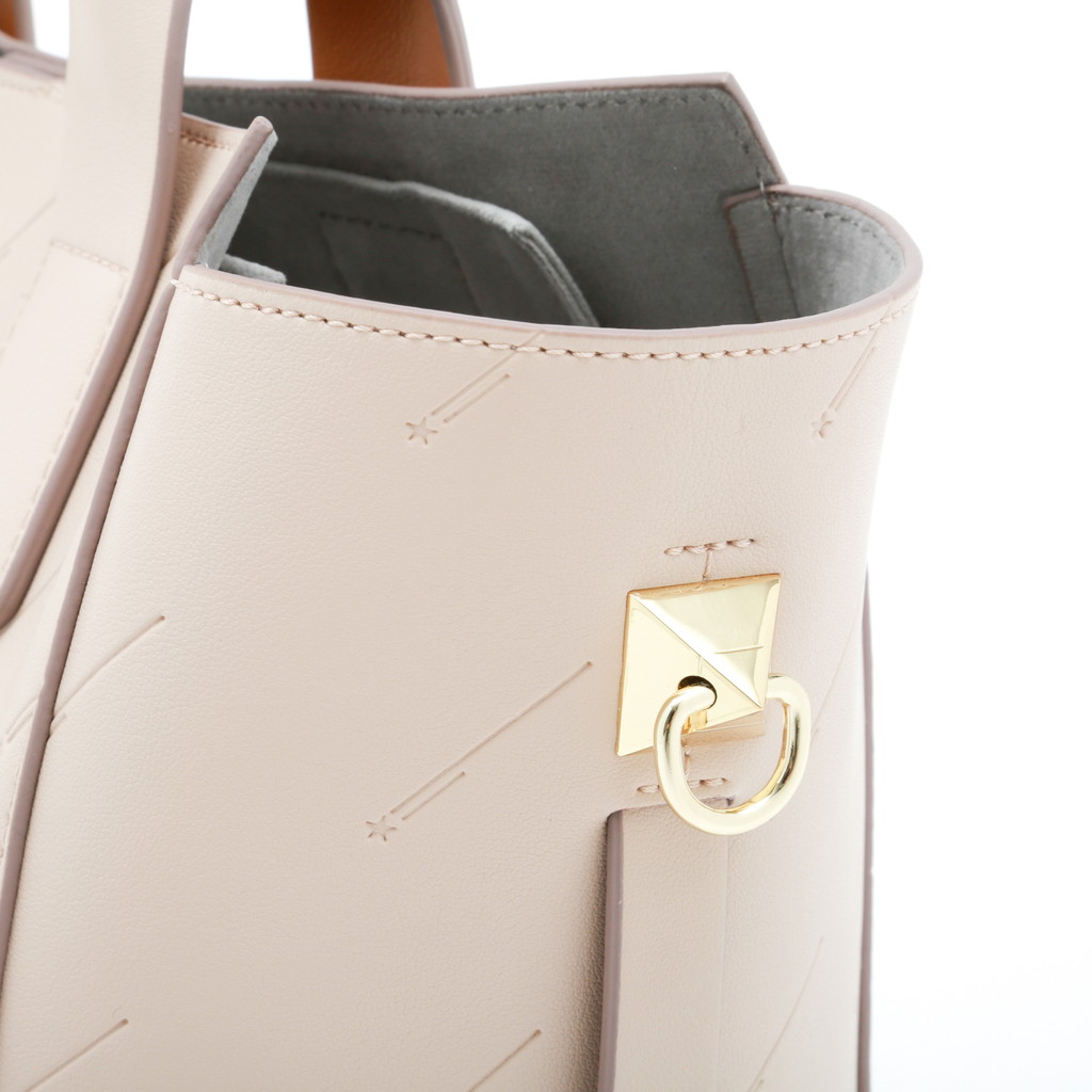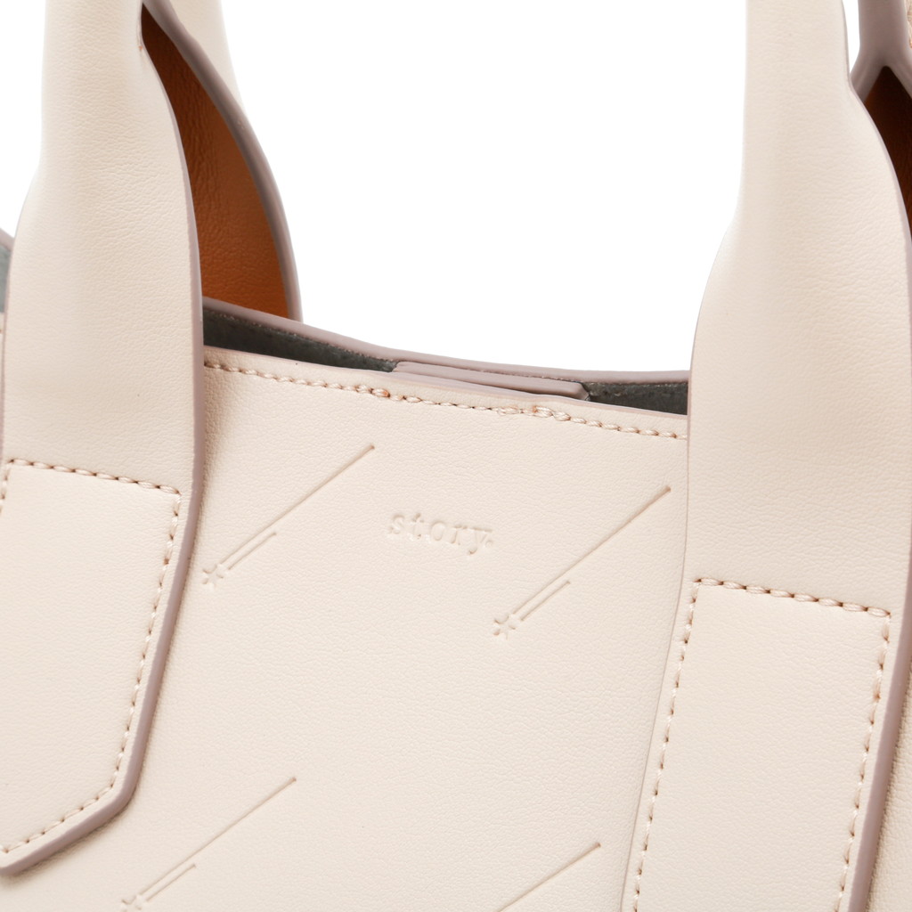 シンプルなトートバッグにアイコニックな流れ星をエンボス加工で施したオリジナリティーのあるシティバッグ。ハンドル背面の配色やスタッズタイプのDカンなど、細部のディテールもstory.らしい拘りが見られます。コンビカラーのインポーチがセットになっており、お荷物を整理するのに重宝します。名前のミーティアシャワーとは流星群という意。