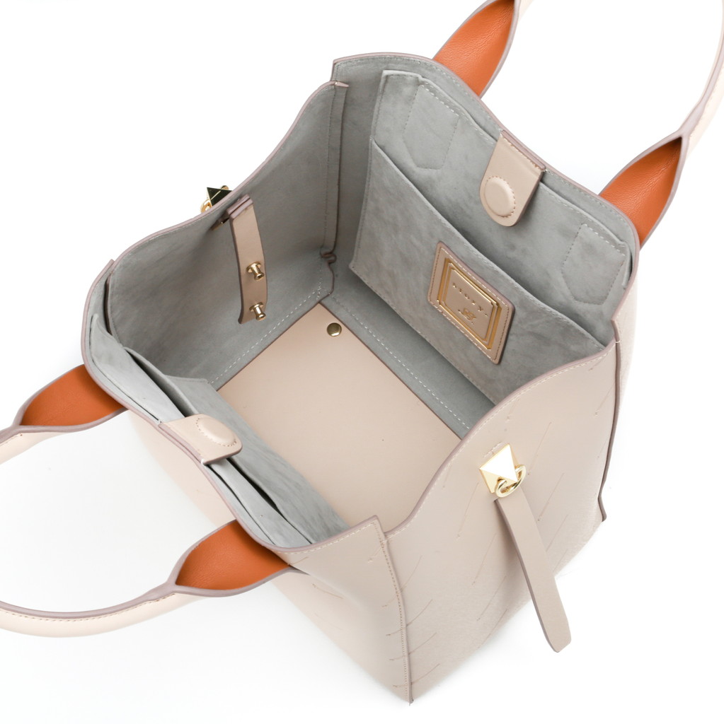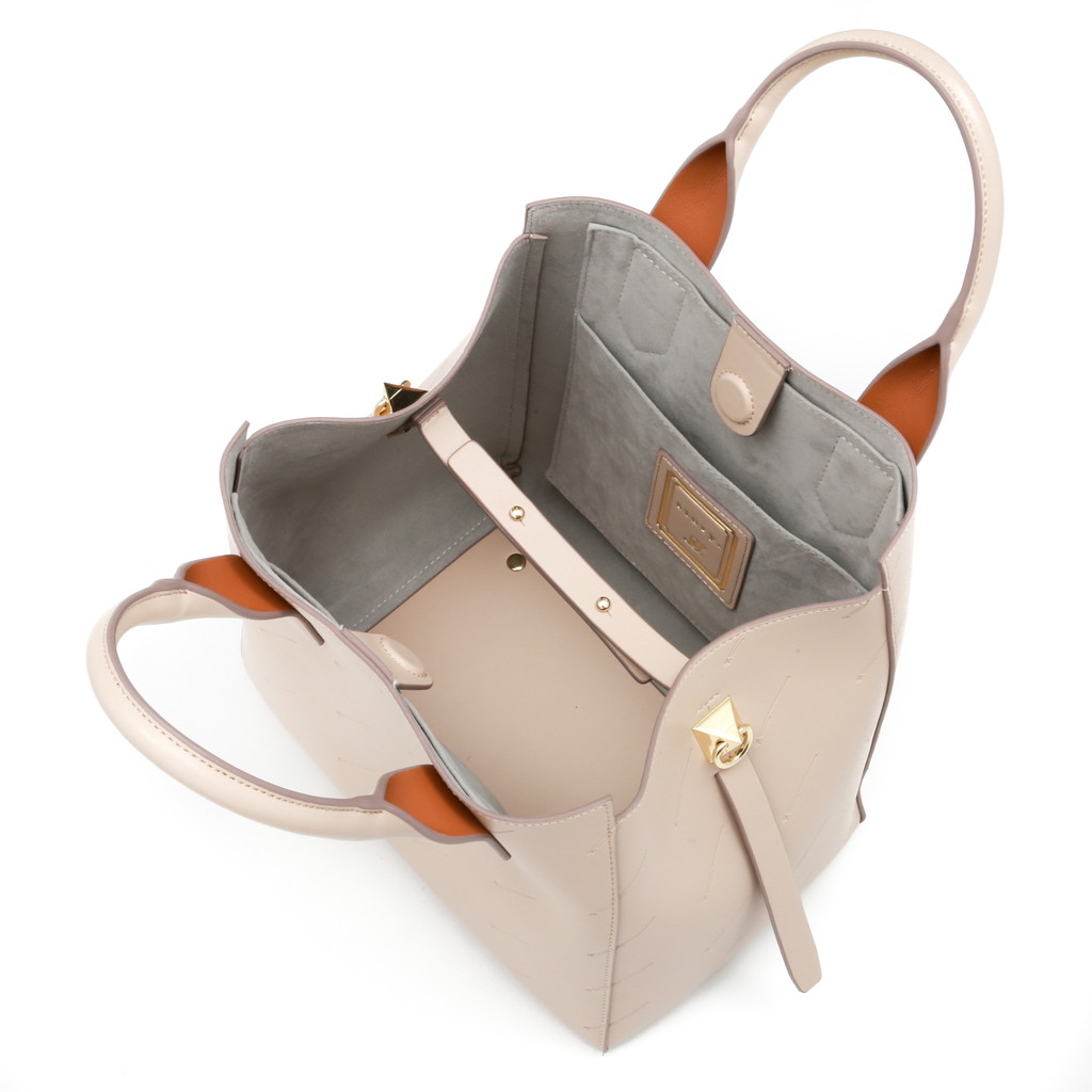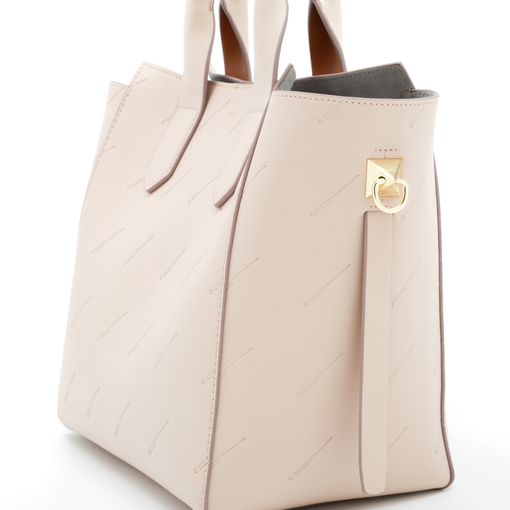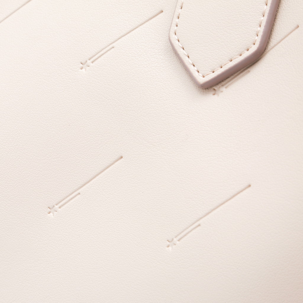 シンプルなトートバッグにアイコニックな流れ星をエンボス加工で施したオリジナリティーのあるシティバッグ。ハンドル背面の配色やスタッズタイプのDカンなど、細部のディテールもstory.らしい拘りが見られます。コンビカラーのインポーチがセットになっており、お荷物を整理するのに重宝します。名前のミーティアシャワーとは流星群という意。