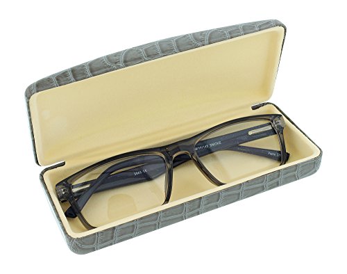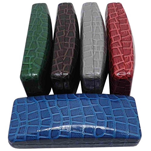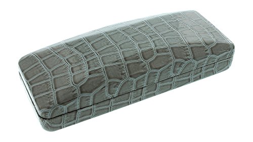 Clamshell Patent Leather Eyeglass Case Faux Crocodile Brown Gray Green Navy Red