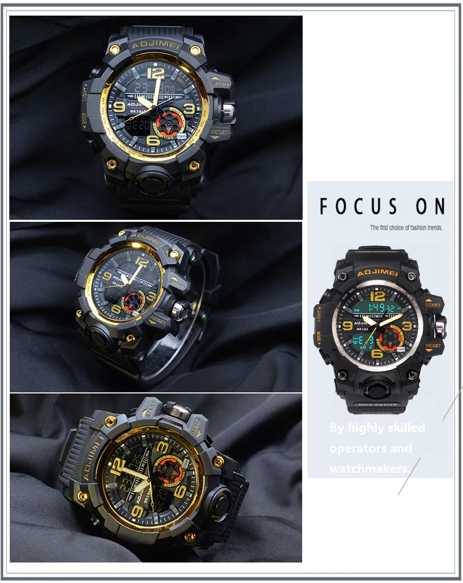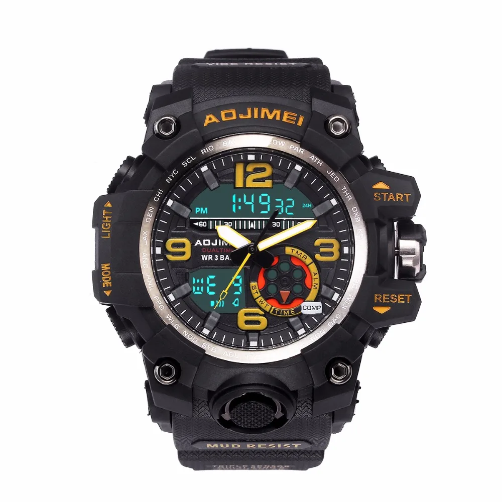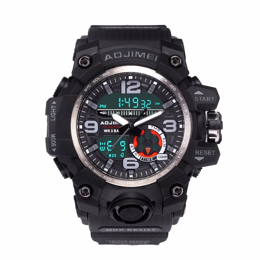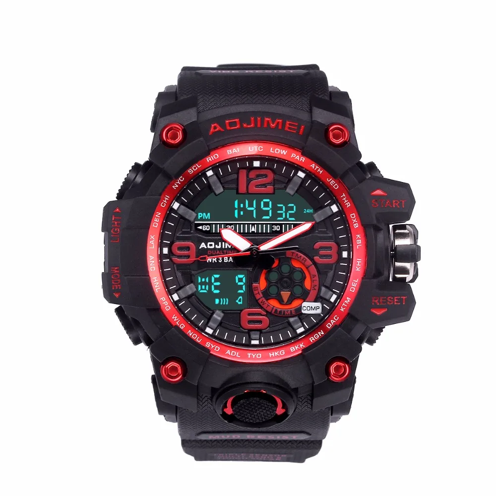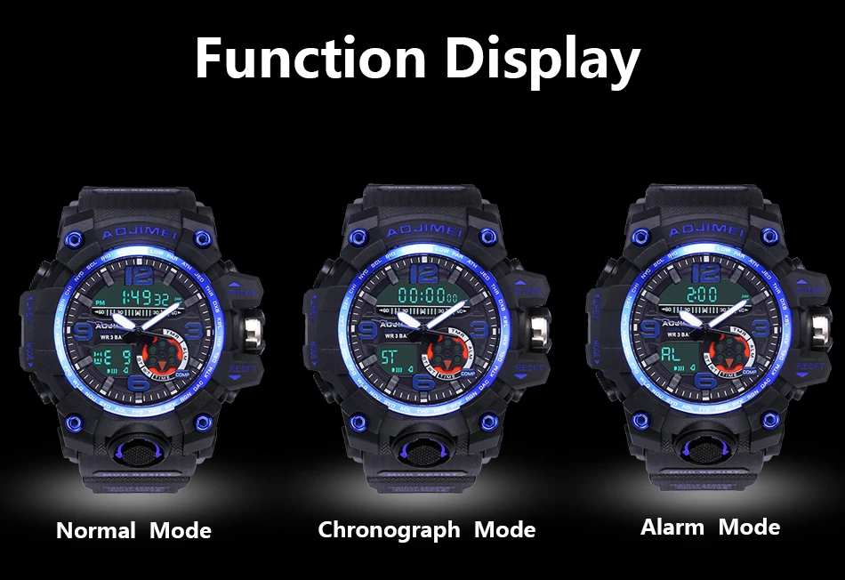 Feature:Water Resistant,LED display,Multiple Time Zone,Stop Watch,Back Light,Complete Calendar,Shock Resistant,Chronograph,Luminous Hands,Auto Date,Anti-magnetic,Alarm