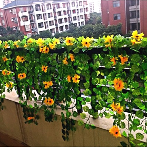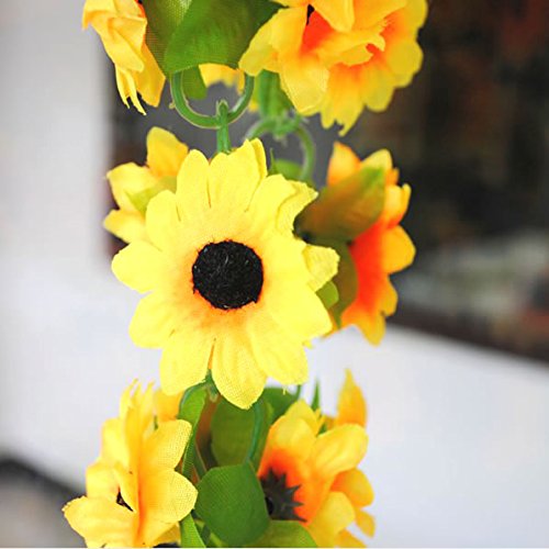 IDS 2 Pack Artificial Sunflower Garland with 10 Flowers for Home Hotel Office Wedding Garden Decor 6.56 Feet