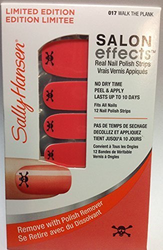 -. Feature : Sally Hansen Salon Effects Real Nail Polish Strips #017 Walk the Plank / No dry time. / Peel & Apply - Removes easily with nail polish remover . / Lasts up to 10 days. / 12 NAIL POLISH STRIPS.
