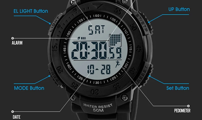 Feature:Water Resistant,Stop Watch,Back Light,Swim,Alarm