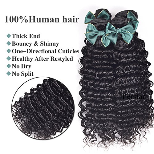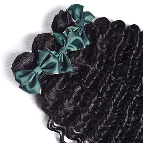 Perstar Hair 8A Grade Brazilian Virgin Hair Deep Wave 3 Bundles Remy Human Hair Weaves Natural Black Factory Price (8 10 12, Natural Color) …