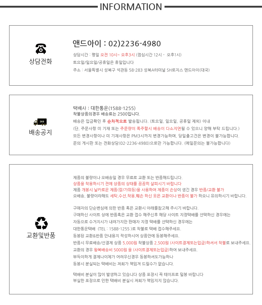 특이 사항 배송, 변경, 반품 환불에 대한 문의는 위 연락처로 문의 주세요.