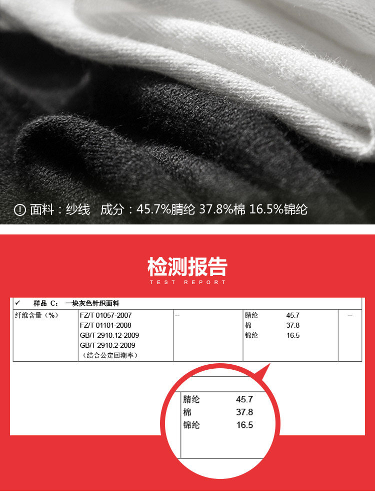 | 面 料:45.7%腈纶37.8%棉16.5%锦纶颜 色:黑色,白色 |