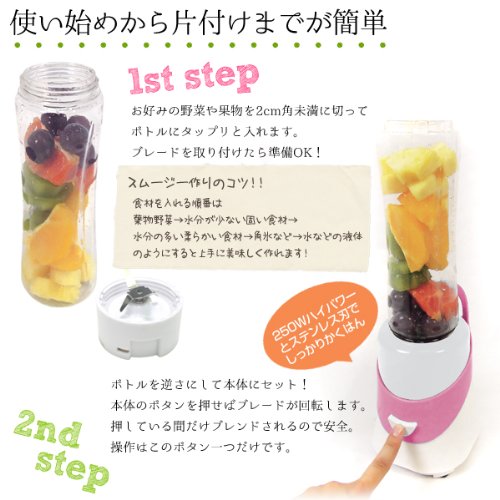 언제라도 어디에서라도 간편하게《스무지》습관!슬림한 스탠드타입의 퍼스널블랜더입니다.버튼 하나 떼지어고 야채나 과일의 영양이 그대로《스무지》에!게다가(더구나),보틀의 뚜껑을 갈아 붙이는 것 뿐(만,만큼)으로 가지고 걷도 할수있어요.몸의 안쪽에서 아름다움이 되고, 마음도 몸도 건강하게!