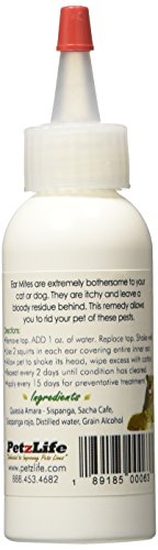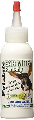 -. Binding : Misc. -. Brand : PetzLife -. EAN : 0189185000637 -. Feature : Use 2 Squirts in Each Ear Covering Entire Inner Ear / Use the Solution For 1 to 2 Days / Symp Should Decrease By the Second Day / 100% Safe For Dogs And Cats -. Label : A.C. Kerman - Pet Products -. Manufacturer : A.C. Kerman - Pet Products -. Model : PL00063 -. MPN : PL00063 -. PackageQuantity : 1 -. PartNumber : PL00063 -. ProductGroup : Pet Products -. ProductTypeName : PET_SUPPLIES -. Publisher : A.C. Kerman - Pet Products -. Size : 2 ounce -. Studio : A.C. Kerman - Pet Products -. Title : PetzLife Ear Mites Remedy Solution for Dogs and Cats -. UPC : 189185000637