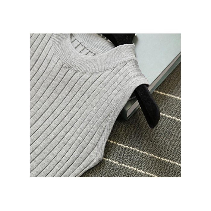 Razotta (《라좃타》) razotta 레이디스 노슬리브 니트 하이네《구》 리브 스웨터 (그레이)