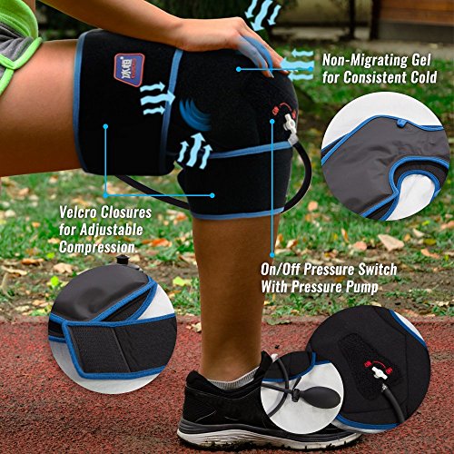 Inflatable Air Compression Gel Wrap For KNEE Pain Relief. Reusable Cyro Cold Therapy Is Colder Than Ice For Long Last Pain Relief From Spasms, Swelling And Sore Muscles. Pneumatic Compression Wrap