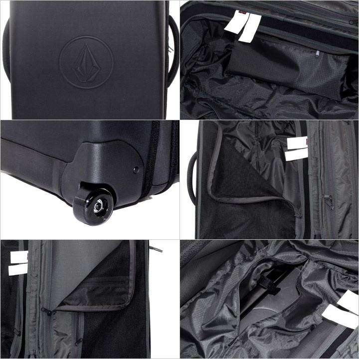 オールブラックをベースにしたボディの小旅行などに便利な45Lキャリーバッグです。付属のランドリーバッグや小物も豊富に収納出来る様々なポケットを装備、ソフトポリエステル素材を採用しどこからでも持てる丈夫なハンドグリップや耐久性に優れたスケートホイールトロリーなどデザインと機能性を兼ね備えた丈夫なキャリーバッグ。2泊3日の旅行やビジネスに最適な大きさです。※二段階仕様のハンドルは途中で止めることは出来ませんのでご注意下さい。