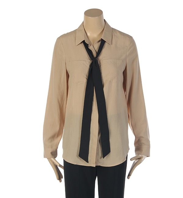 CC collect, 리본타이로 포인트를주어 세련스러우면서도 여성스러운 분위기를 느낄수있는 블라우스입니다