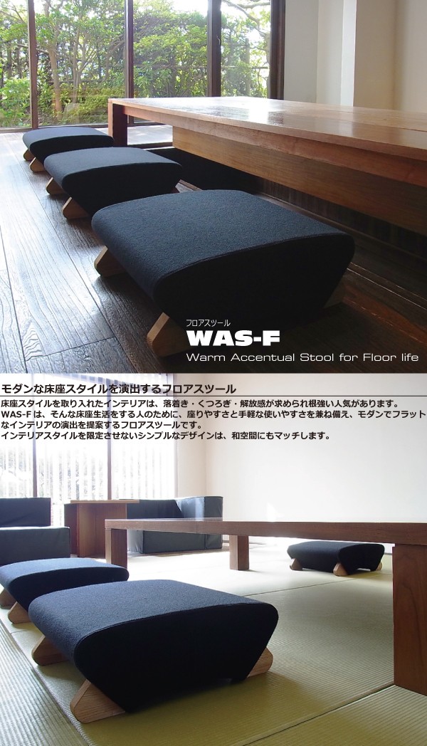 WAS-Fは、そんな床座生活をする人のために、座りやすさと手軽な使いやすさを兼ね備え、モダンでフラットなインテリアの演出を提案するフロアスツールです。