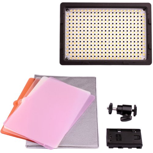 - Feature : The LED camcorder lamp light allows you to link lights together to make larger light. / This 304-piece-LED item can be used in video taking, either for lights setup or supplement. / There are 3 filters included with this item, with Spotlight effect, diffuse effect, and for reducing the color temperature to 3200K. / Designed with Standard hot shoe plug, so can be installed on the DV or DSLR, and DC with standard hot shoe. / Rotate switch for on/off and brightness adjustment.