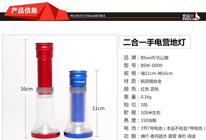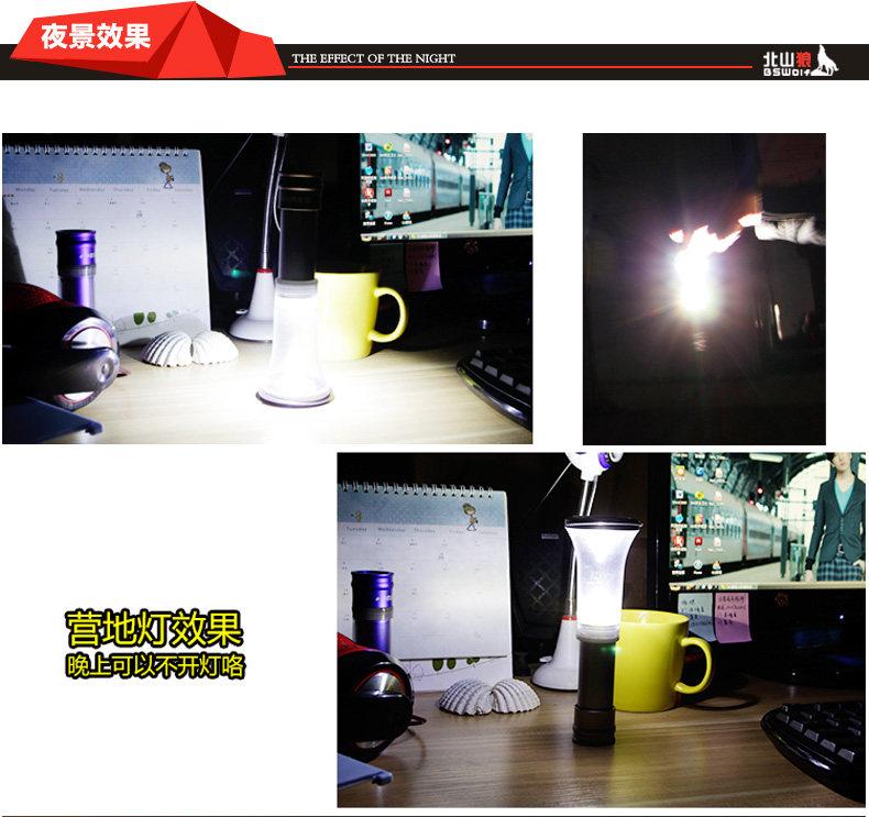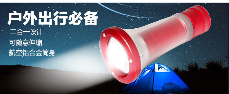 北山狼伸缩式营地灯强光手电筒帐篷灯营地灯露营灯户外应急野营灯