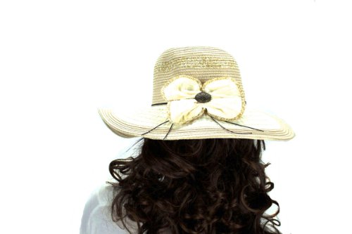 -. Title : Noonies Boutique Cream Flower Straw Hat 16'' w/ 4'' Brim