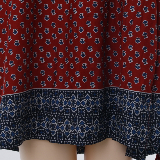 보더 프린트로 포인트를 주었으며 앞, 뒤 셔링을 주어서 여유분이 충분하다.