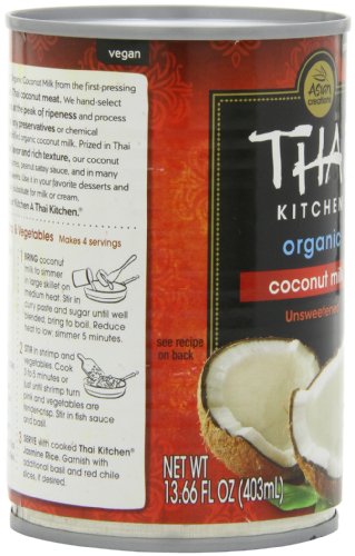 THAI KITCHEN ORGANIC COCONUT MILK UNSWEETENED , 13.66-OUNCE (PACK OF 6)