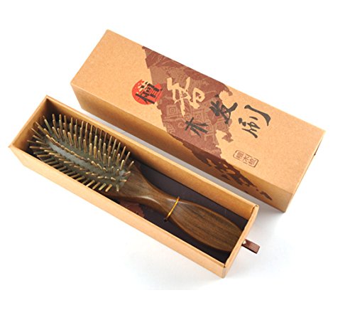 Imstyle Natural Green Sandal Wooden Hair Brush with Cushion Anti-static Detangling for Hair Maintaining Care (Premium Giftbox)